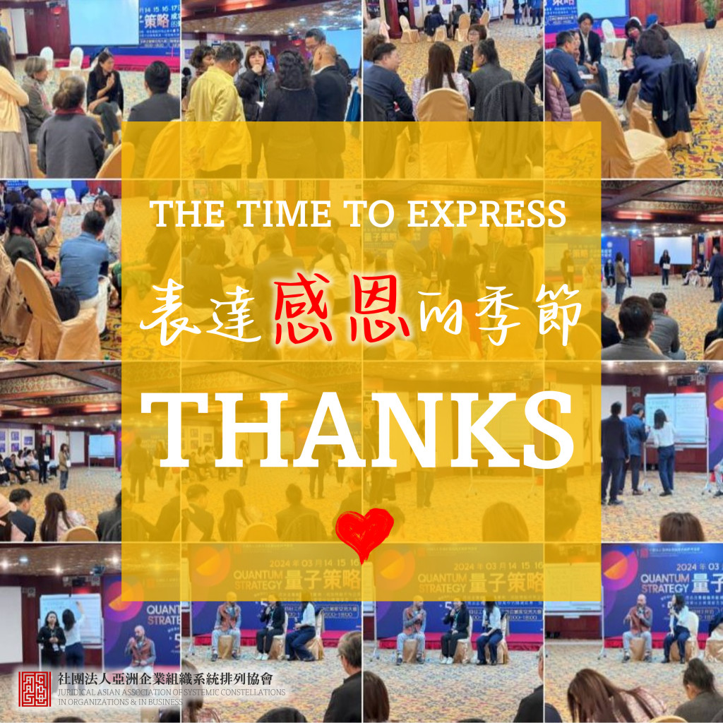 因此,我們「社團法人亞洲企業組織系統排列協會」希望在這個感恩的季節裡,誠摯感謝過去受聘的外部專業人士。