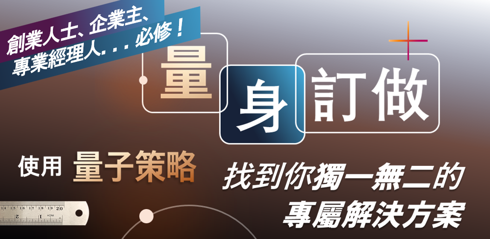 在多變的商業世界,企業主、主管、創業者的處境各不相同——沒有萬用公式。「量身訂做」一日工作坊以【量子策略】為核心,邀請你運用最新的【量子策略】工具,開啟一場探索自我與創新思維的旅程!